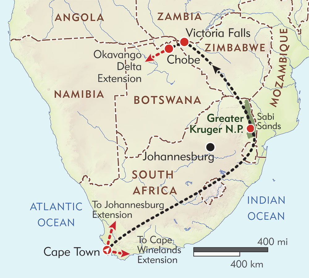 Begin your Cape Town adventure with a visit to Table Mountain. Ascend by cable car for panoramic views of the city and coast. With your private guide, learn about the rich biodiversity found here — over 1,500 species of plant life. Later, explore Cape Town’s highlights including the Houses of Parliament, Castle of Good Hope, Company Gardens, and the colorful Bo-Kaap neighborhood.